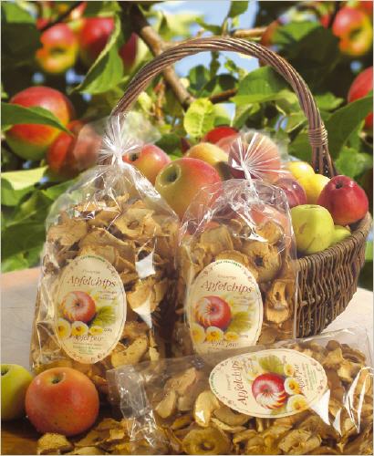 Apfelchips enthalten Fruchtzucker, Kalium, Calcium, Magnesium, Eisen und andere Mineralstoffe, ebenso Vitamin A, B1, B2, wertvolles Pektin und wirken verdauungsanregend.