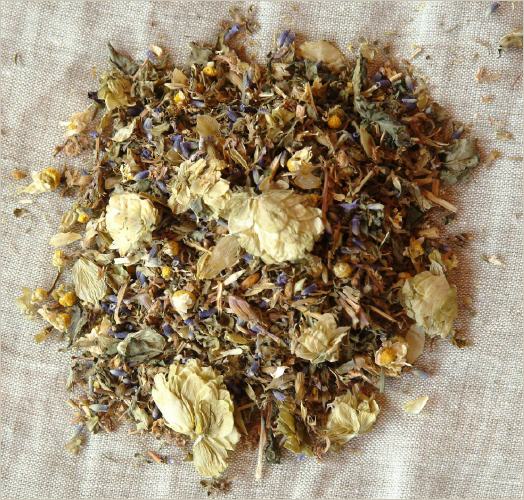Johanniskraut, türkische Melisse, Hopfen, Basilikum, Kamille, Lavendel.